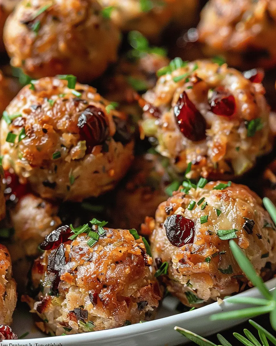Discover the irresistible combination of turkey, cranberries, and spices in these delightful stuffing balls that are perfect for any occasion.