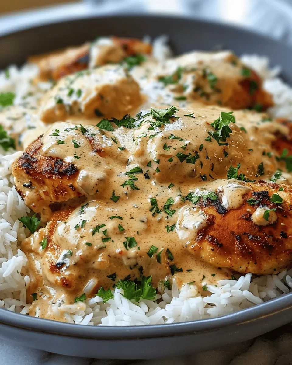 In conclusion, creamy smothered chicken is a comforting dish that combines tender chicken, rich flavors, and a creamy sauce, served perfectly over fluffy rice. This recipe is not only easy to prepare, but it’s also a fantastic way to impress friends and family with your culinary skills.