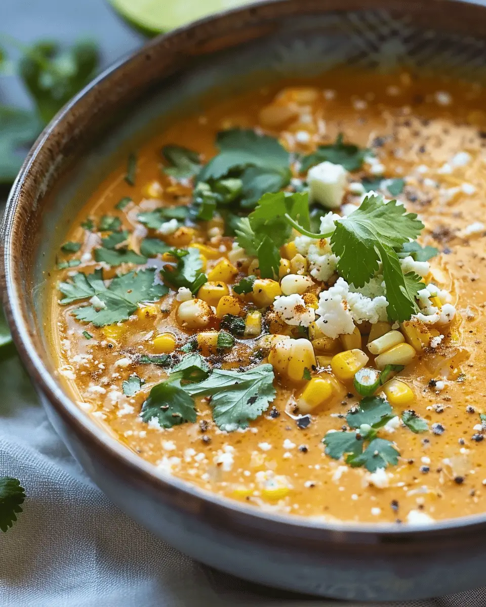 Whether it serves as a nourishing comfort food on a chilly night or as a crowd-pleaser at your next social gathering, this soup is versatile and fun. Don’t forget to customize it with toppings like chopped cilantro or crunchy tortilla strips for that authentic street corn flair. Try making it today, and let us know how it turns out!