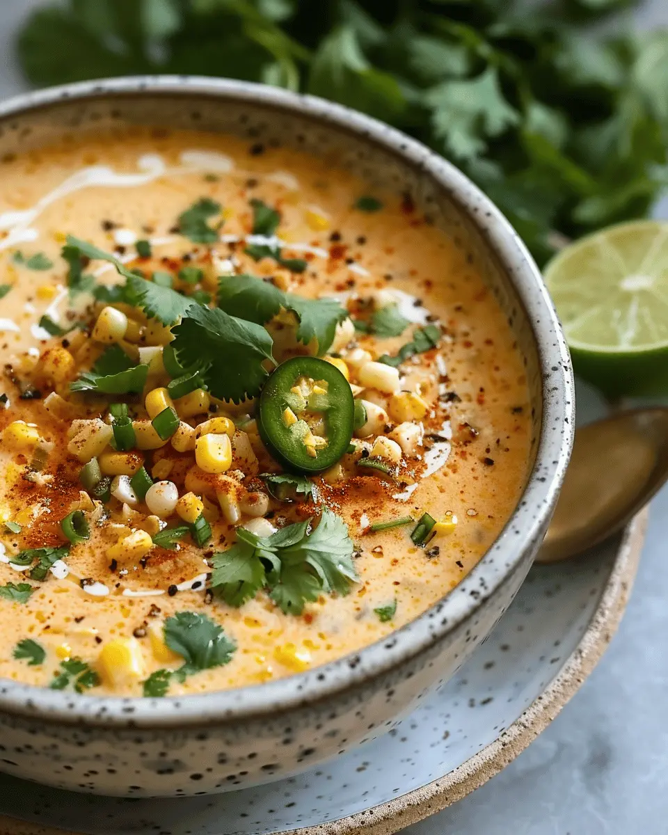 Finally, it’s time for the showstopping finish. Ladle generous portions of your Mexican Street Corn Soup into bowls and garnish with: