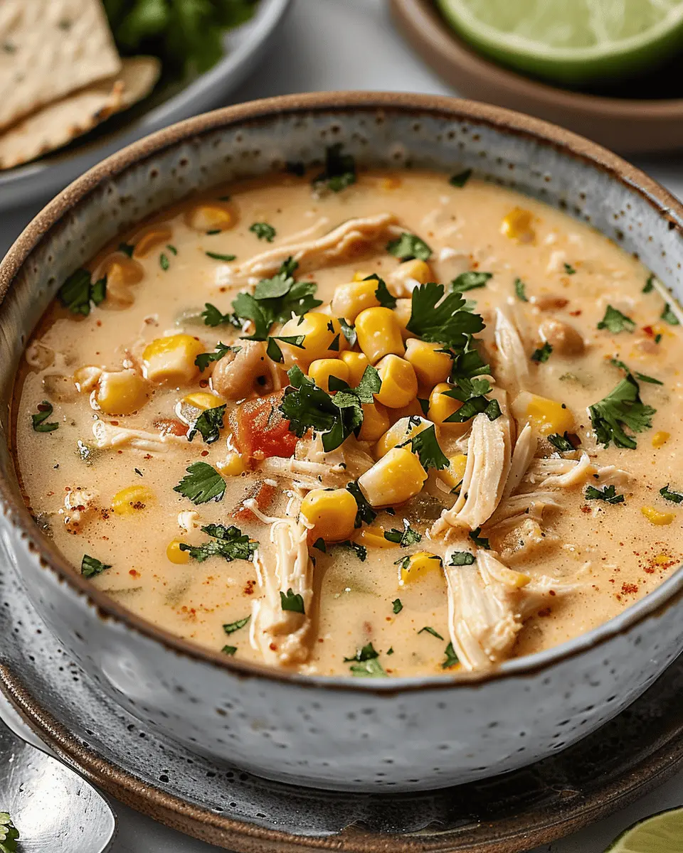 A comforting and flavorful chili that combines the essence of Mexican street corn with tender chicken.