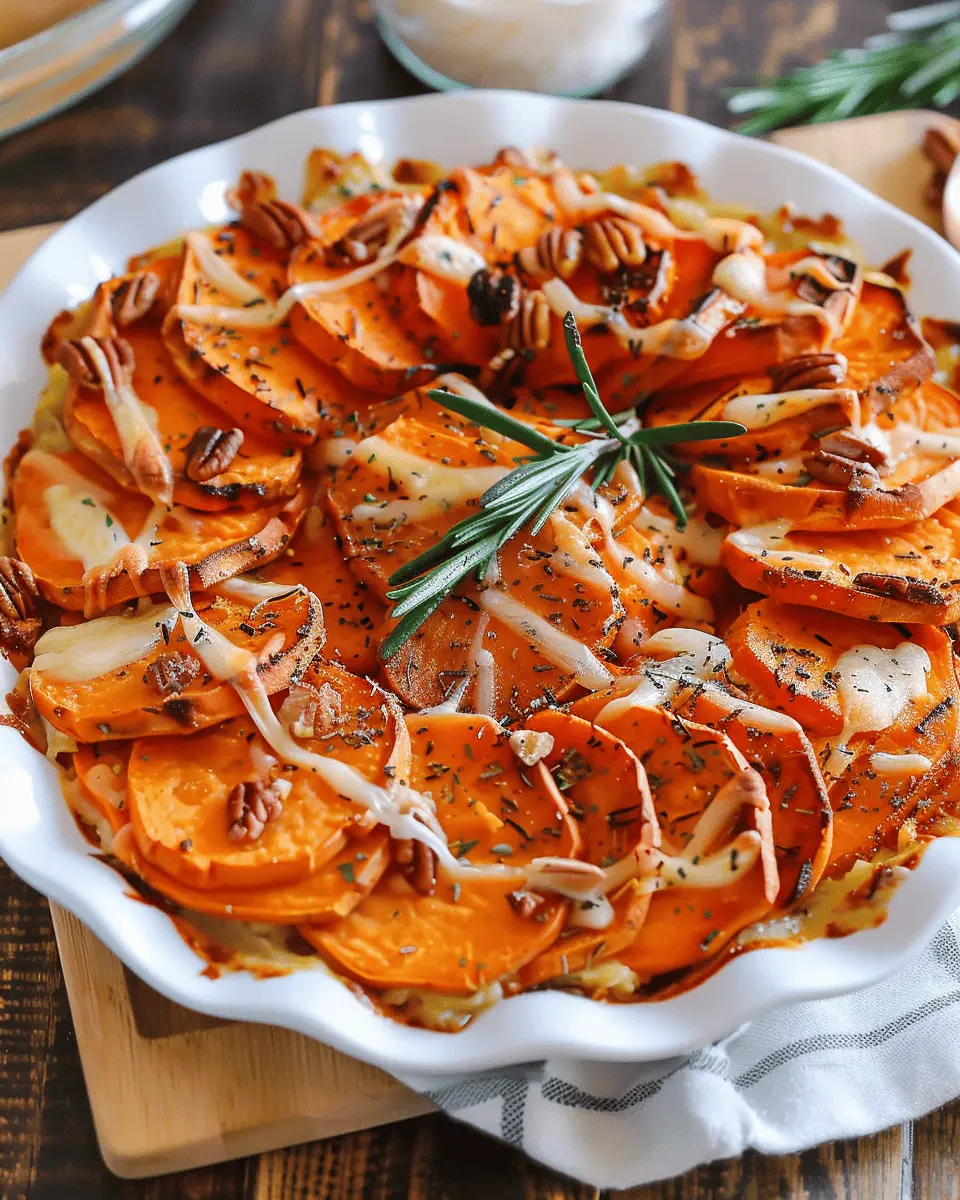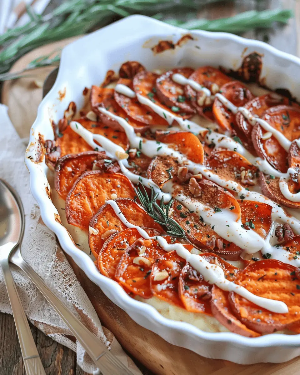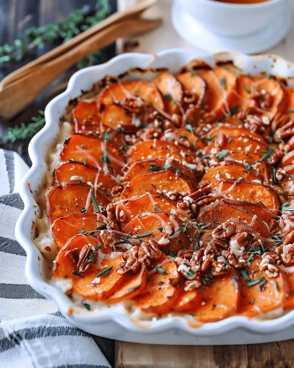 For a beautiful presentation, think about how you layer your scalloped sweet potatoes. A simple casserole dish can become a centerpiece with the right garnishes.