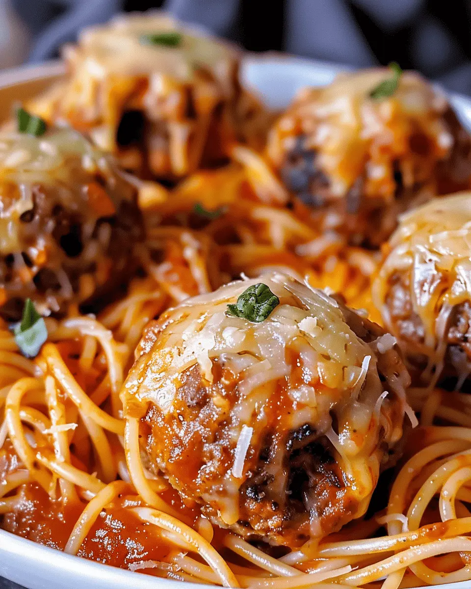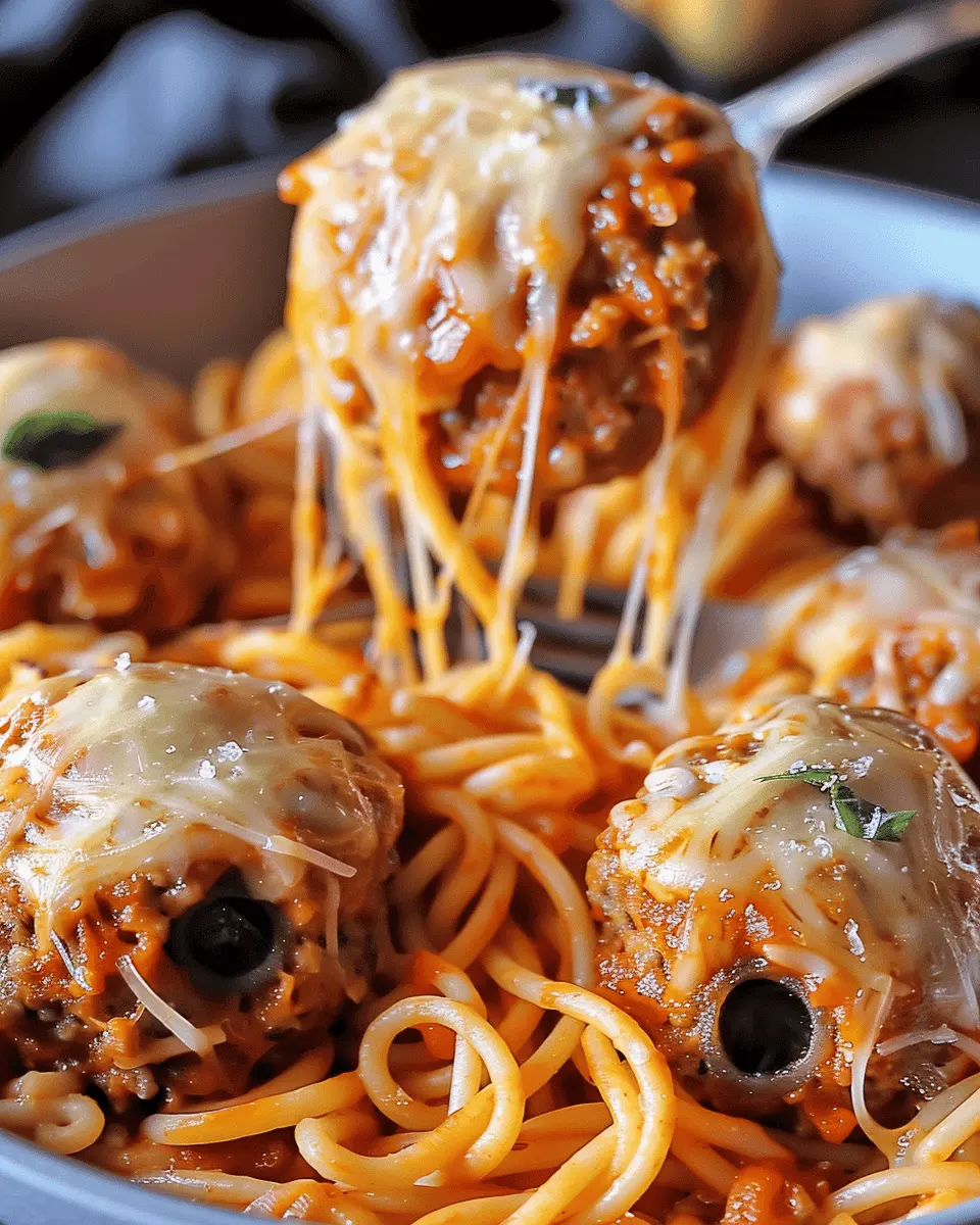 These Spooky Spaghetti and Cheese Stuffed Meatballs are the perfect Halloween treat, combining delicious flavors with a fun presentation.
